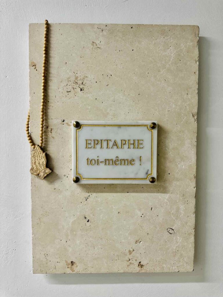 À travers une esthétique singulière mêlant résine, post-it, os de volaille et objets du quotidien, l’artiste compose un véritable cabinet de curiosités contemporain où s’entrelacent gravité et humour, fragilité et force introspective.