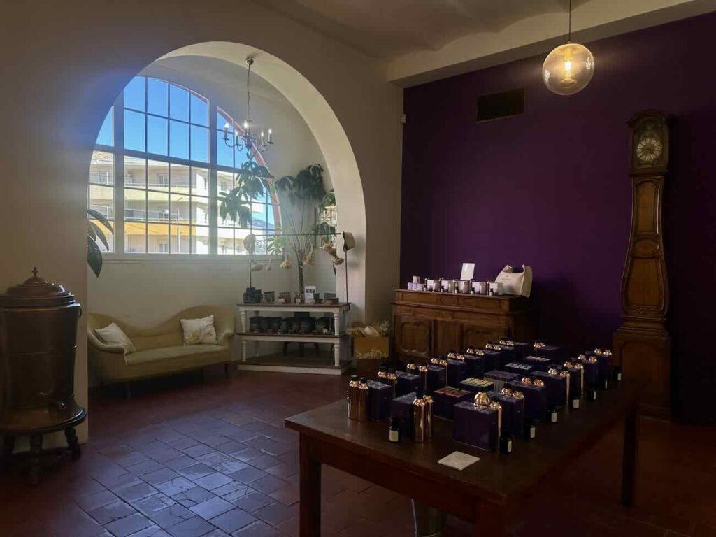Le parcours met également en lumière la fabrication de savons artisanaux et les différentes étapes qui mènent de la fleur brute au parfum fini, dans une atmosphère à la fois didactique et raffinée.